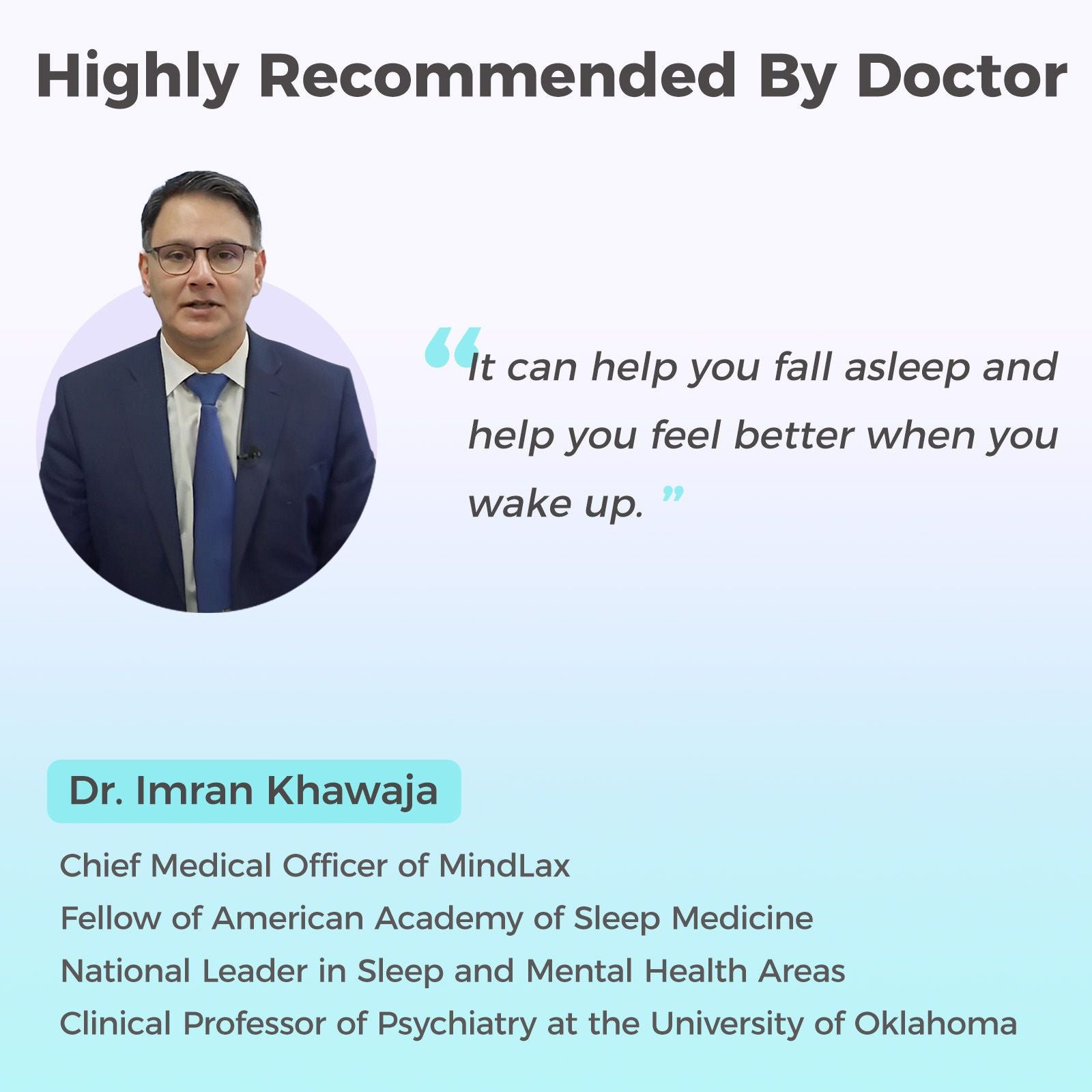 Developed by Harvard public health specialist and experienced psychologists, MindLax is highly acknowledged by top sleep scientist Dr. Imran Khawaja, and other doctors in their clinical practice.